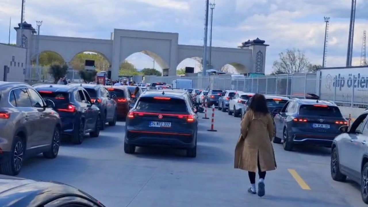 Yoğunluğun gün boyunca devam ettiği sınır kapısında, geçişlerin yavaş ilerlemesi nedeniyle araç kuyruğunun kilometrelerce uzadığı gözlendi.